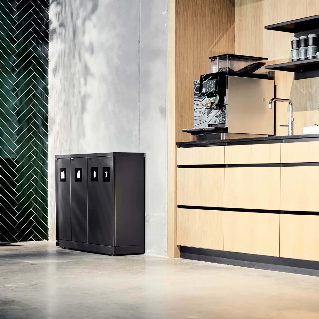 A waste system should fit into the office and into the common areas. You and your employees should walk right past and only stop when you need to dispose of your waste. You should not be in doubt about what goes in which bins. If you ask us, waste sorting is good style and a matter of course in everyday life.